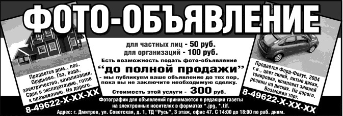 Добро пожаловать в каталог бесплатных объявлений Дмитрова! Здесь вы найдете то, что искали! Большая база объявлений поможет в этом.